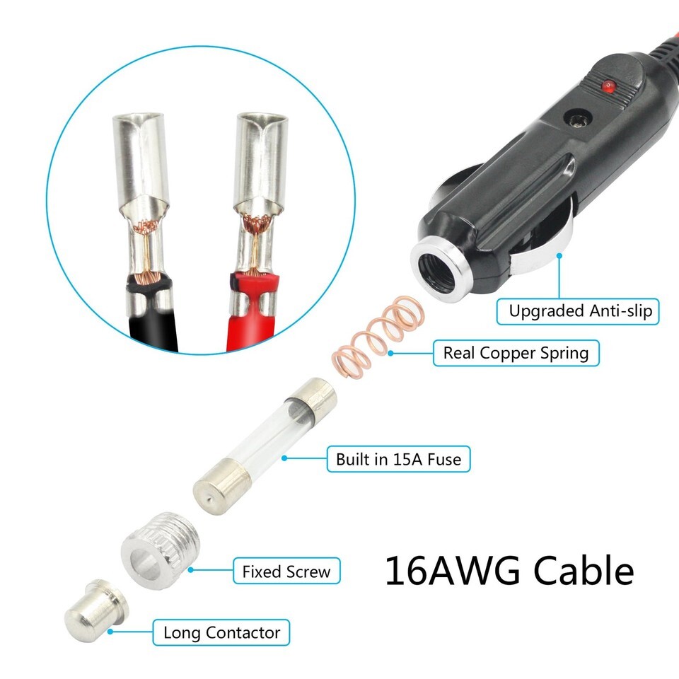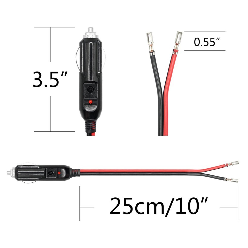 - Maixbomr 2Pcs Cigarette Lighter Male Plug 16AWG 10inch Cable 12V Fuse LED