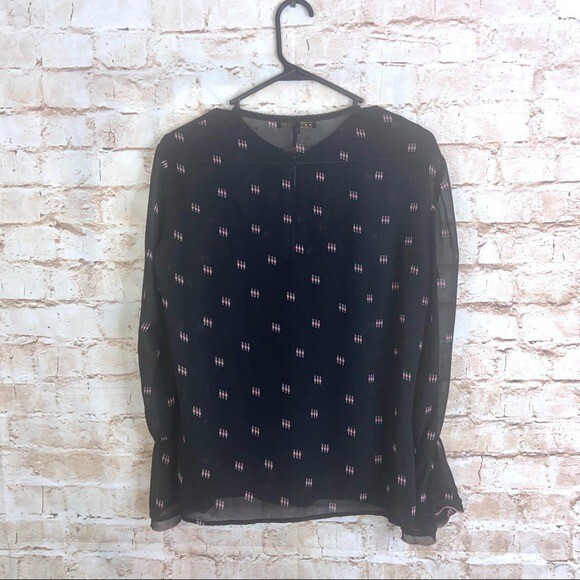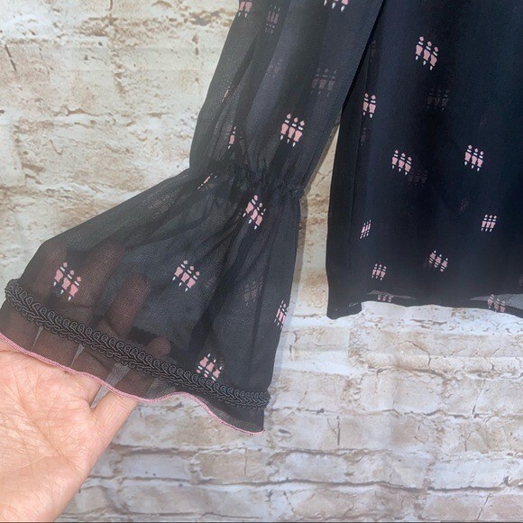 - Maje Litea Trimmed Printed Semi Sheer Voile Bell Sleeve Blouse Size 1 Small