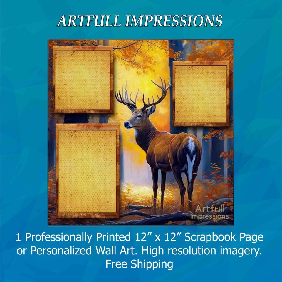 - Majestic Buck in Rustic Autumn Forest Personalized Wall Art or Scrapbook Page
