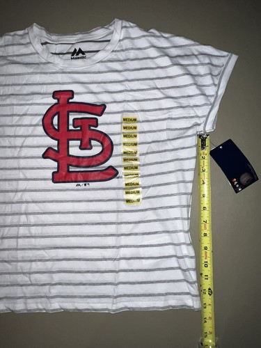 Majestic St Louis Cardinals Short Sleeve Women’s T Shirt M MLB White Gray Stripe