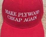 Get These PROFESSIONALLY EMBROIDERED (no cheap screen print or heat press) Trump Inspired Parody Hats- MAKE PLYWOOD CHEAP AGAIN. All Red hats are brand new, unisex, adult vellcro adjustable(one size fits most), professionally embroidered and offer great detail. Bulk available! Get them while supplies last.