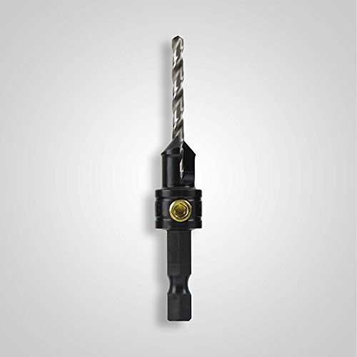 Product description: Drill the pilot hole and countersink or counterbore for screws in one easy step! The 82 countersink matches the angle on the head of most screws. Precision machined in the USA with tight tolerances. Made of thru-hardened alloy steel providing long cutting life. 1/4" hex power bit shank to fit in impacts and quick change chucks. Easily adjust or replace drill bit by loosening the hardened set screw that ensures a secure hold on the pilot drill. Utilize the Snappy Premium Roatating Depth Stop for precise depth control (Part # 43032) (Sold Seperately)
