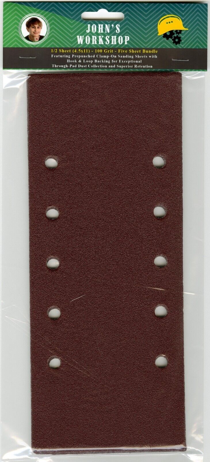 Makita BO4900V - 1/2 Sheet (4.5x11") - 100 Grit - PrePunched - 5 Sheet Sandpaper Bundle