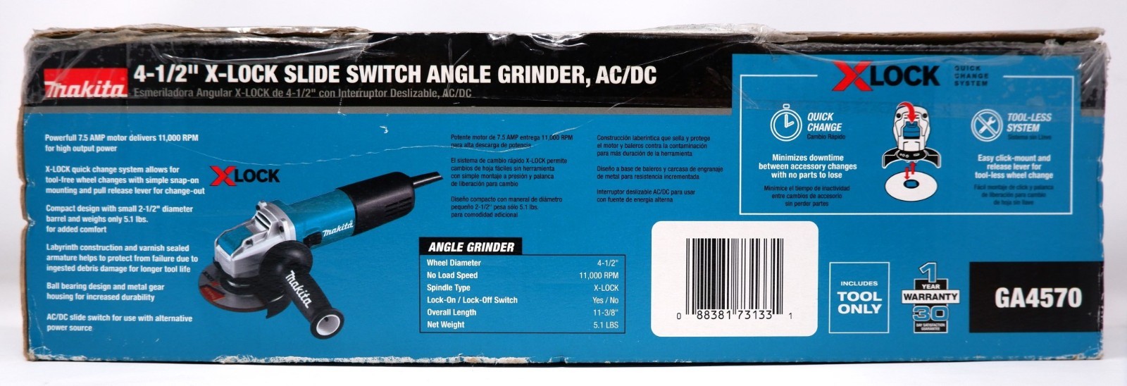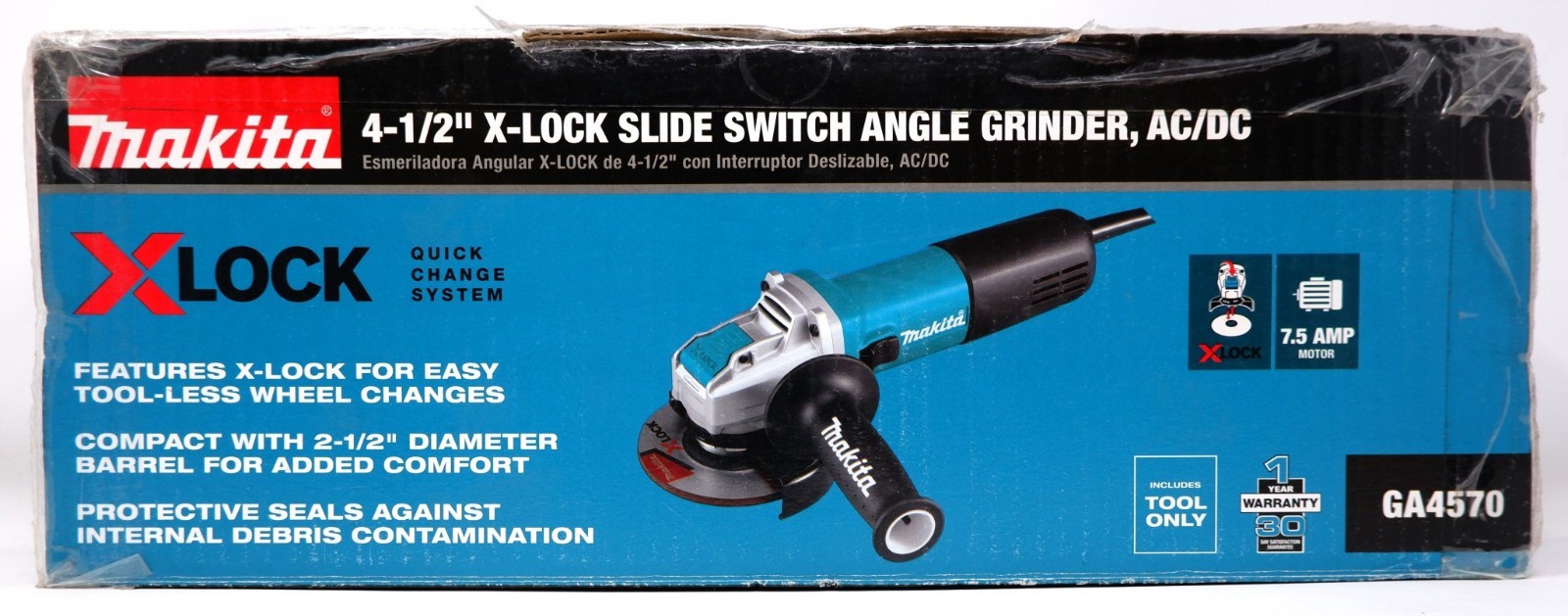 - MAKITA GA4570 18V 4.5" X-LOCK SLIDE SWITCH ANGLE GRINGER WITH AC/DC - NEW!