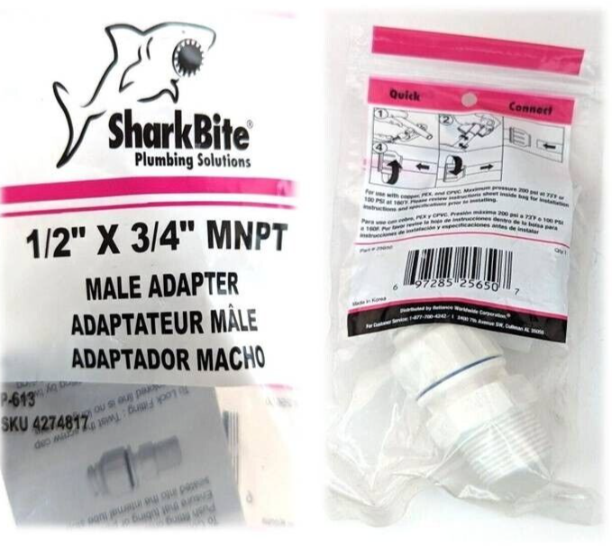 - Male Connector 1/2'' CTS x 3/4'' Dia NPT Push To Connect, SharkBite 25650 2-PACK