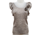 Mango Womens Knit Top Size S Embellished Rosette Flutter Sleeve Beige Neutral