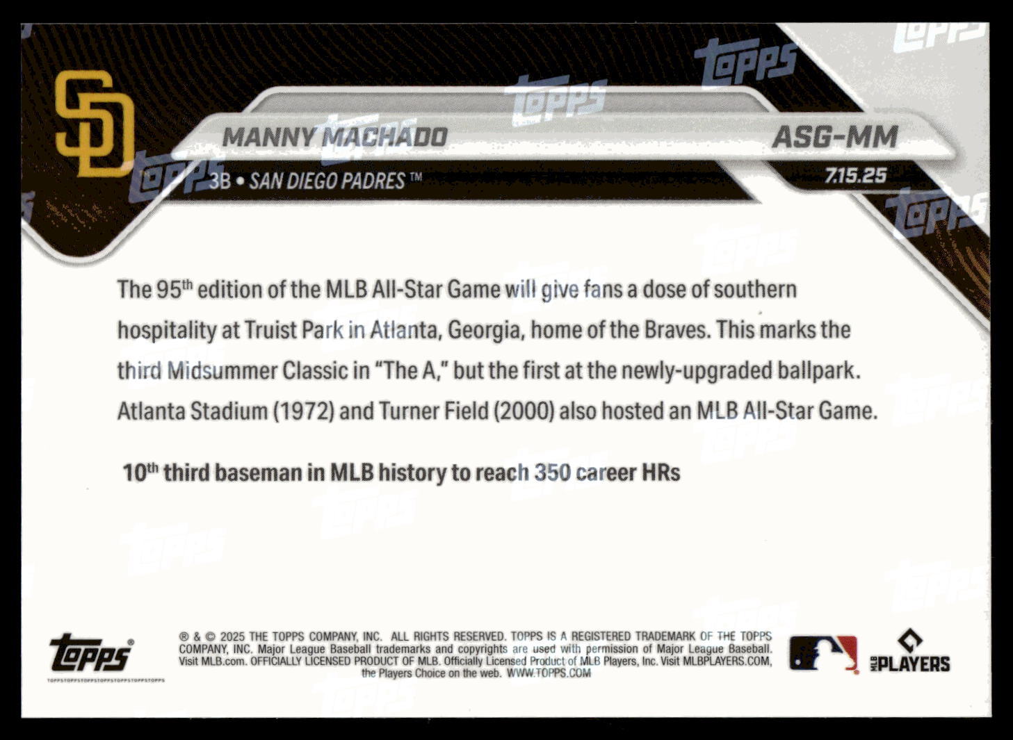 - Manny Machado Limited Edition* 2025 MLB Allstar Game National vs American ASG-MM