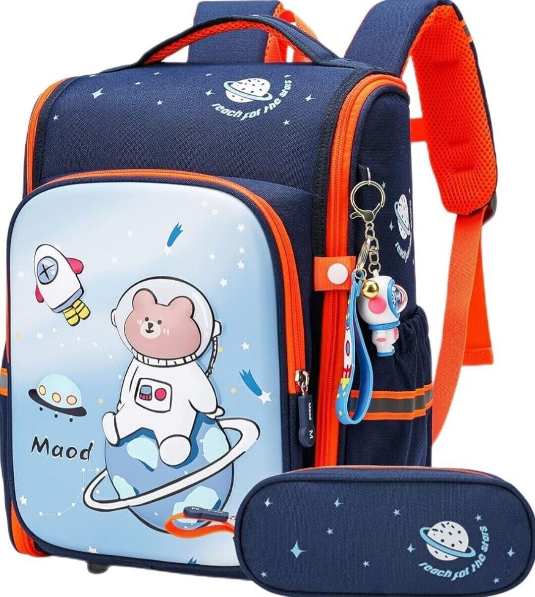 This Maod backpack is perfect for your little boy's elementary school needs. With its cute design featuring a blue color, it's sure to become your child's favorite bag. The backpack is made for durability and is perfect for carrying books, school supplies, or personal items. Its spacious compartments and pockets provide ample storage space for all your child's essentials. This backpack is perfect for boys and is designed to withstand the wear and tear of everyday use.