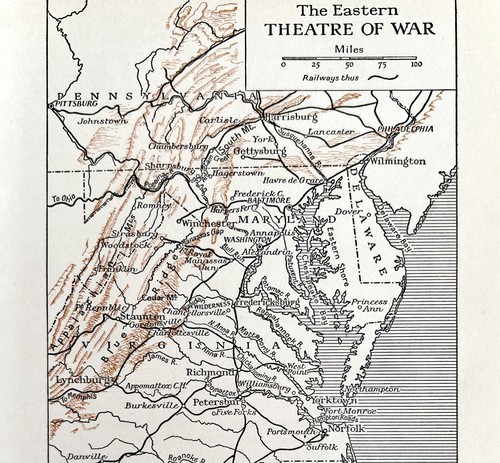 Map 1930 Eastern US Theatre Of War 5.5 x 9" Military History Ephemera DWEE2