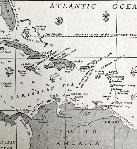 - Map 1942 Caribbean Sea In Colonial Era 5.5 x 9" World History Ephemera DWW6B