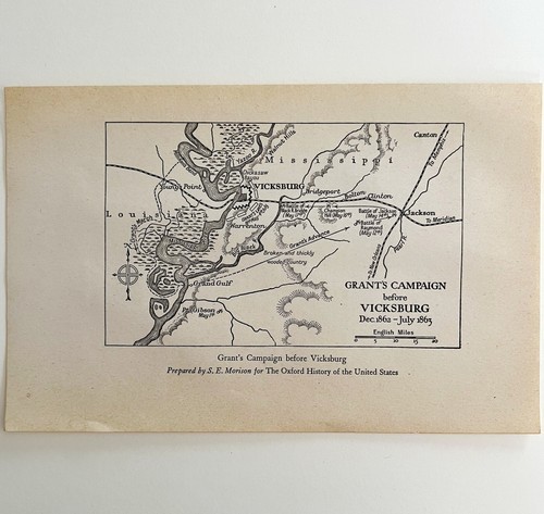 - Map 1942 General Grant's Campaign Vicksburg 5.5 x 9" History Ephemera DWW6B