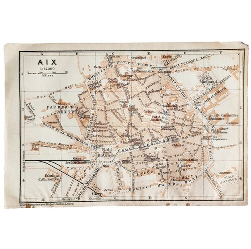 - Map Aix Southern France Rare 1914 Lithograph WW1 Street Mini Sheet DWAA20B