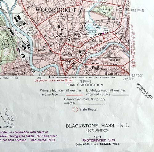 - Map Blackstone Massachusetts RI USGS 1979 Topographic Geo 1:24000 27x22" TOPO12