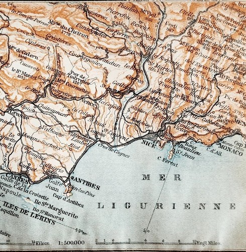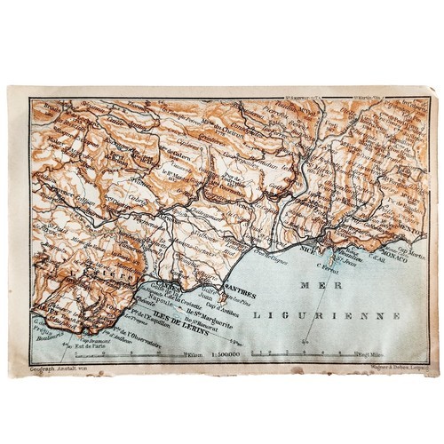 - Map Cannes To Monaco Southern France Rare 1914 Lithograph WW1 Topo Mini DWAA20B