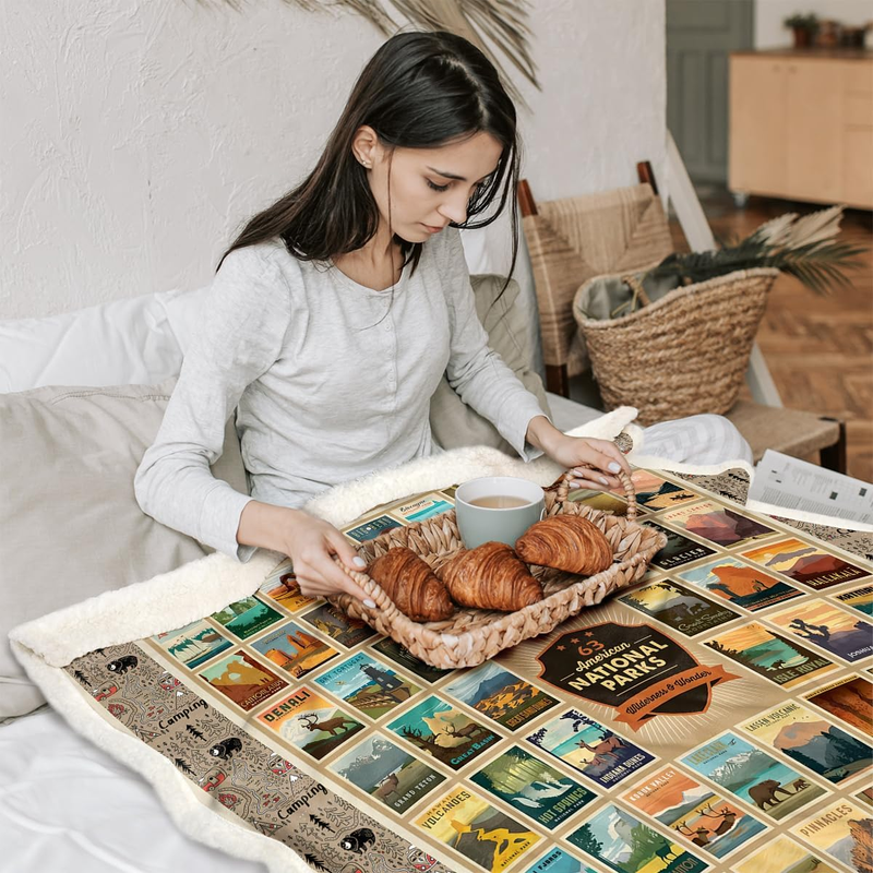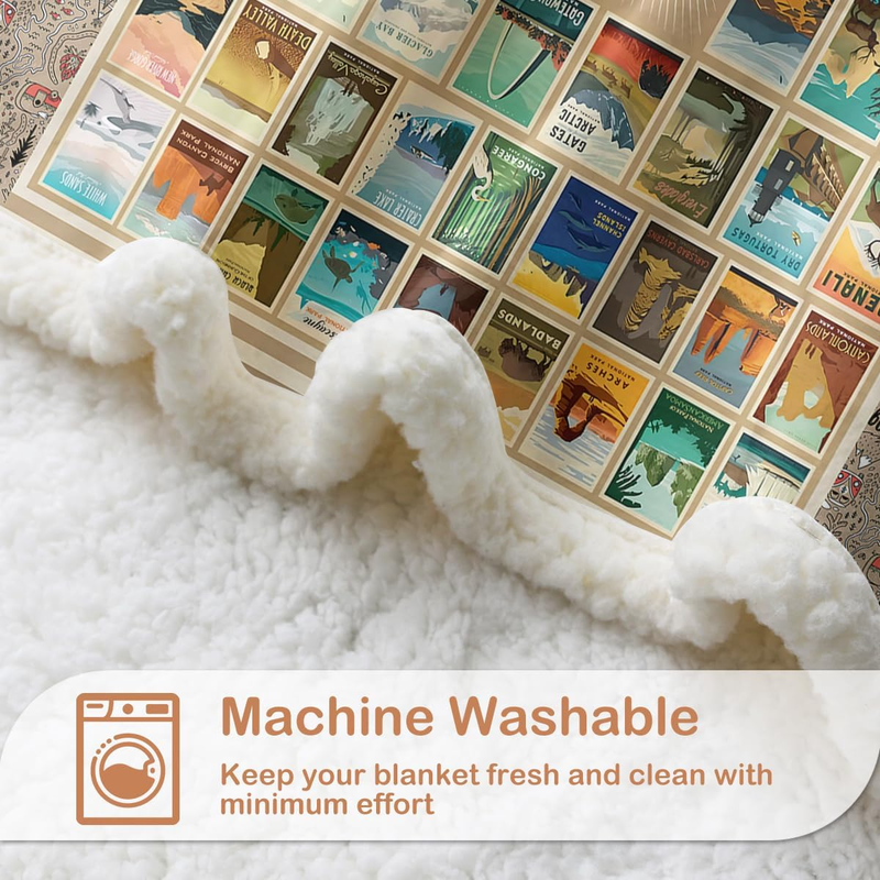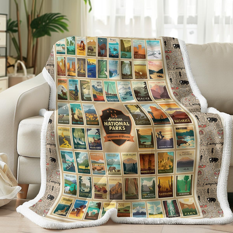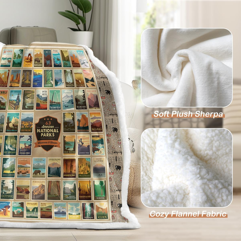 - Map Fleece Blanket for Couch Sofa Travel, American National Park Throw Blanket S