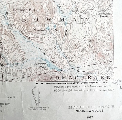 - Map Moose Bog Maine NH 1927 Topographic Geo Survey 1:62500 21 x 17" TOPO3