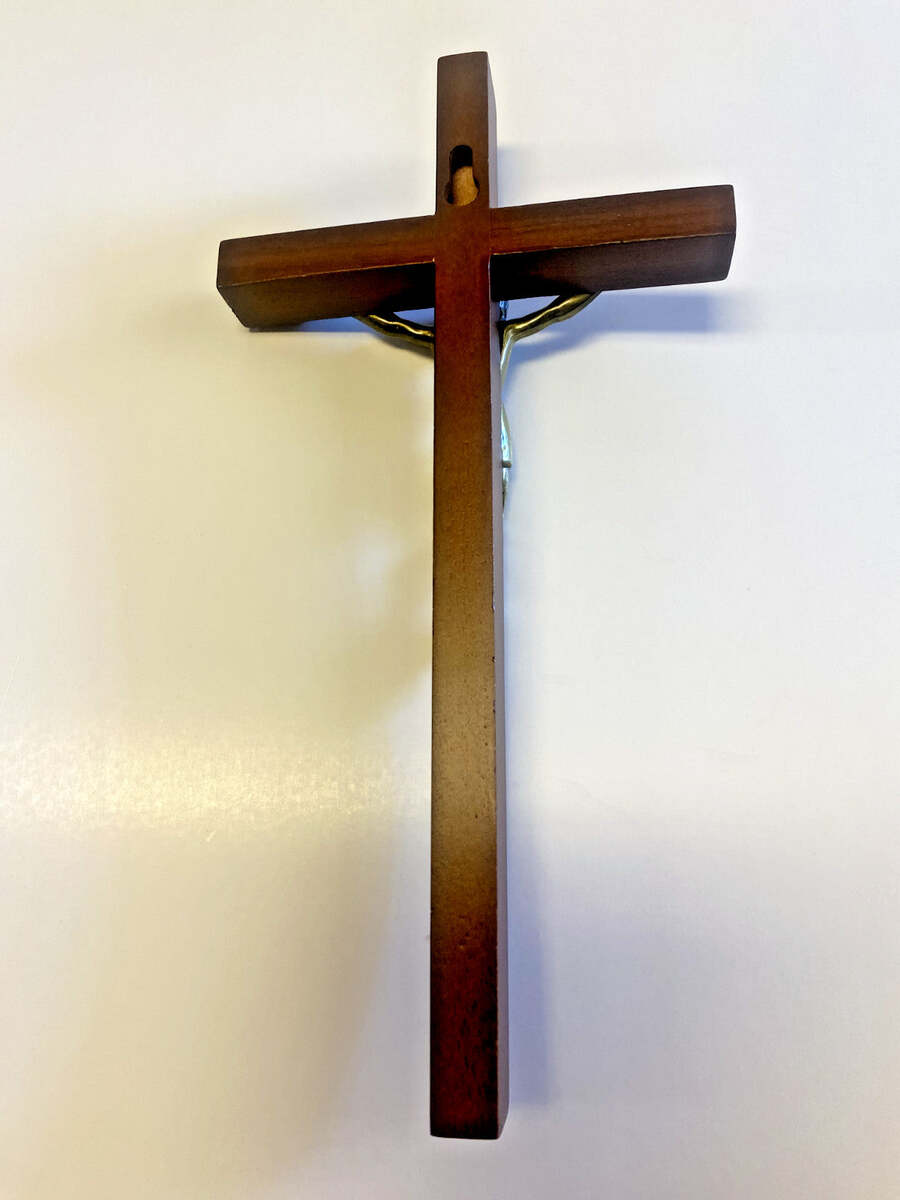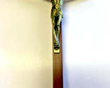 Your purchase is for a beautiful maple wood crucifix with walnut finishes that measures 10" H. It comes with antique gold finishes.