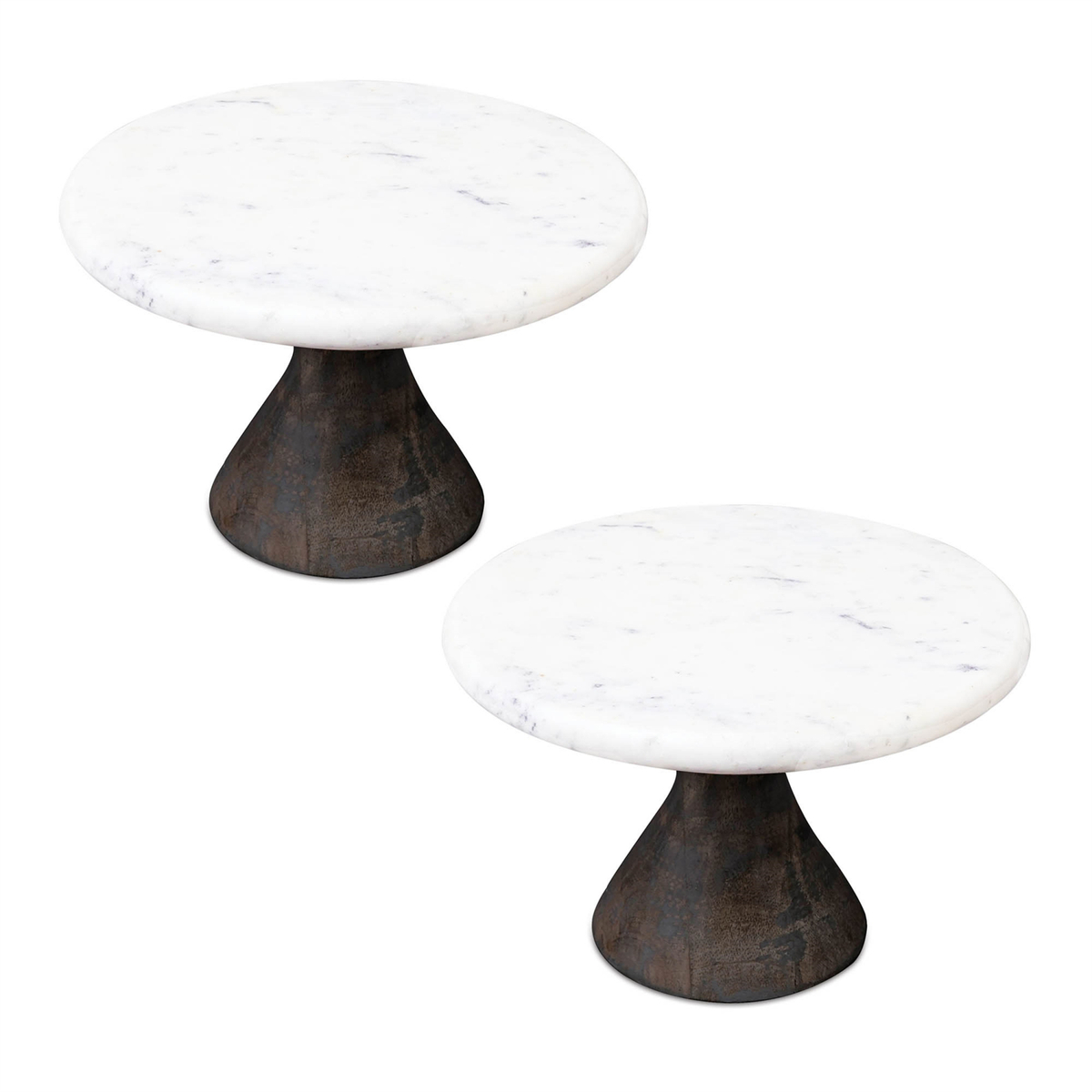 - Marble Pedestal Tray with Wood Base (Set of 2) - 851526