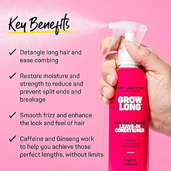 Grow Long Super-Fast Strength Leave-In Conditioner: With Caffeine, Ginseng, and Vitamin E, this Leave-In Conditioner from Marc Anthony detangles, smooths frizz, and gives hair the strength it needs to help reduce split ends and breakage. 8.4 fl oz.