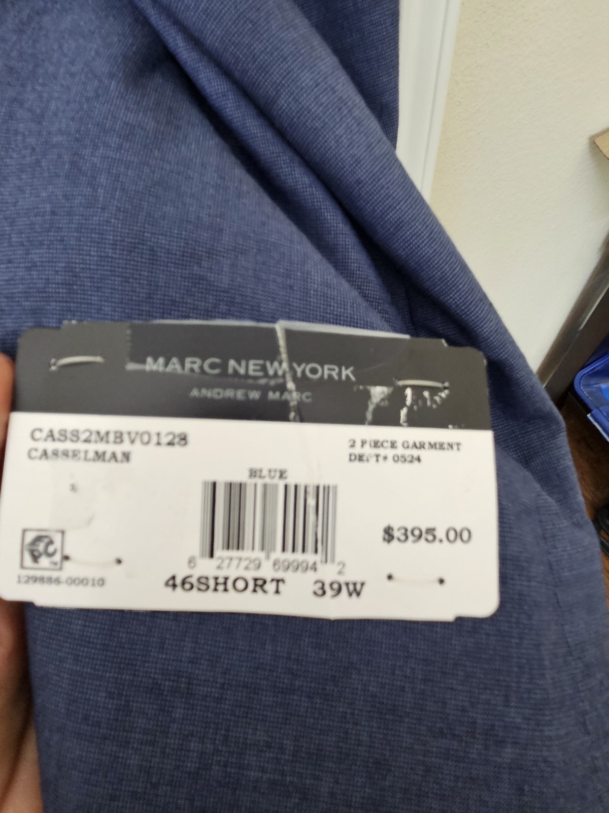 - Marc New York by Andrew Marc Modern-Fit Suit Jacket Size 46 Short NWT Blue