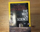 This March 2015 issue of National Geographic features the provocative cover story, 'The War on Science.' At a time of growing public skepticism, this edition tackles prevalent misinformation surrounding topics like climate change, evolution, and the moon landing. The striking cover art, a diorama of the moon landing, encapsulates the theme of questioning established facts. This issue also contains a significant report on the Syrian refugee crisis, offering a poignant look at one of the most critical humanitarian issues of the mid-2010s.