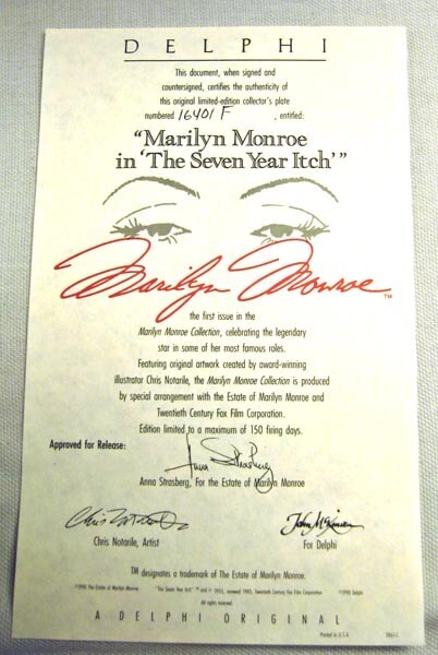 - Marilyn Monroe The Seven Year Itch Collector Plate Delphi 1990 Ltd Ed COA 8.5"