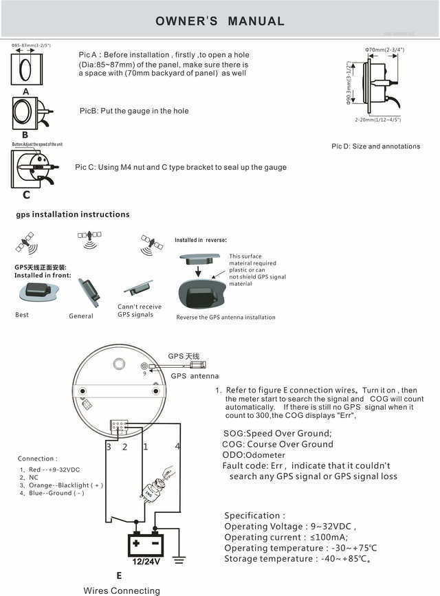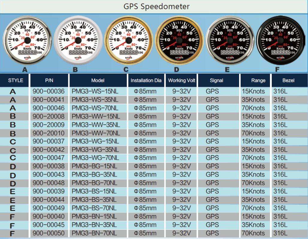 - Marine Boat Auto GPS Speedometer Speed Meter Gauge 85mm 70Knots 9-32V 316L Bezel