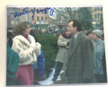 The product is an 8x10 photograph featuring Bill Murray and Nancy Taylor from the movie "Groundhog Day," signed by Marita Geraghty. This memorabilia piece is a unique and original collectible for fans of the film and entertainment industry, showcasing authentic signatures from the actors. The photograph captures a moment from the iconic movie, making it a valuable piece for any movie enthusiast's collection.