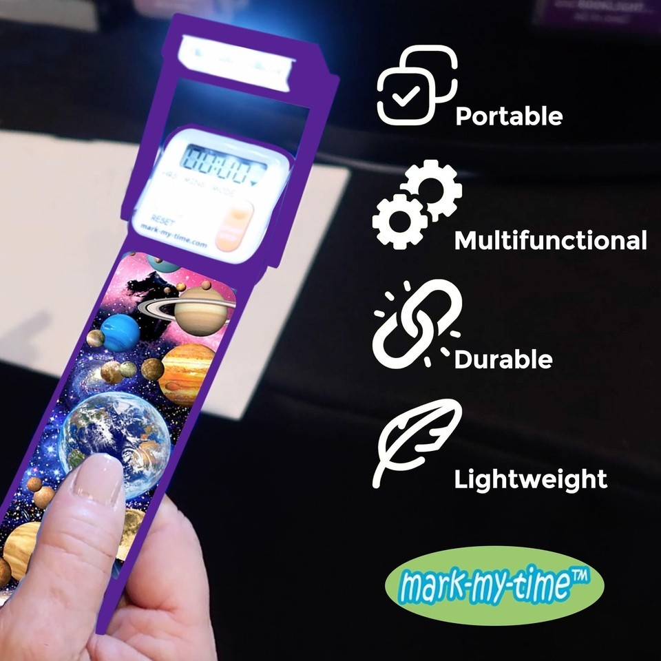 - Mark-My-Time Digital Bookmark LED Book Light Timer 3D Planets Plastic