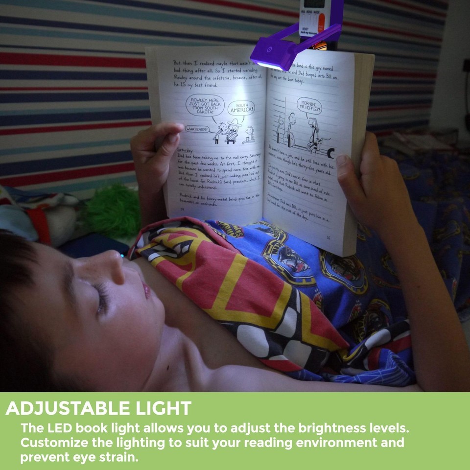 ADJUSTABLE LIGHT The LED book light swivels to help light up a page to suit your reading environment and prevent eye strain.