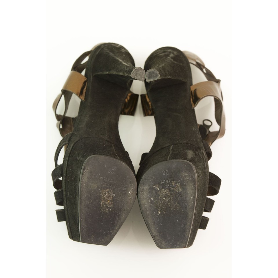 - Marni Black Suede and Metallic Leather Cage Sandal Platforms - Sz38