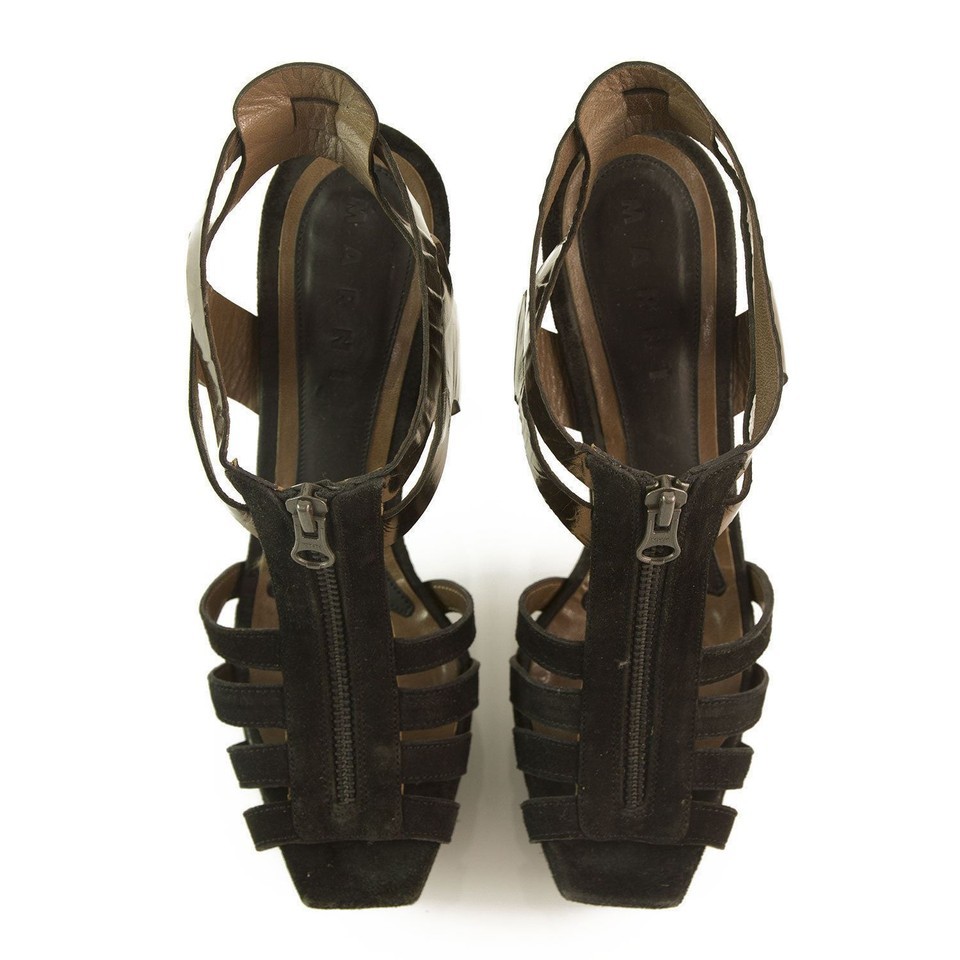 Marni Suede and Metallic Leather Cage Sandal Platforms - Sz38