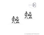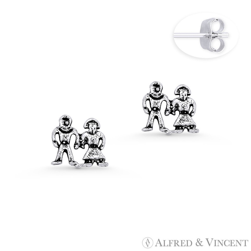 Married / Wedding Couple Charm Stud Earrings Oxidized .925 Sterling Silver Studs