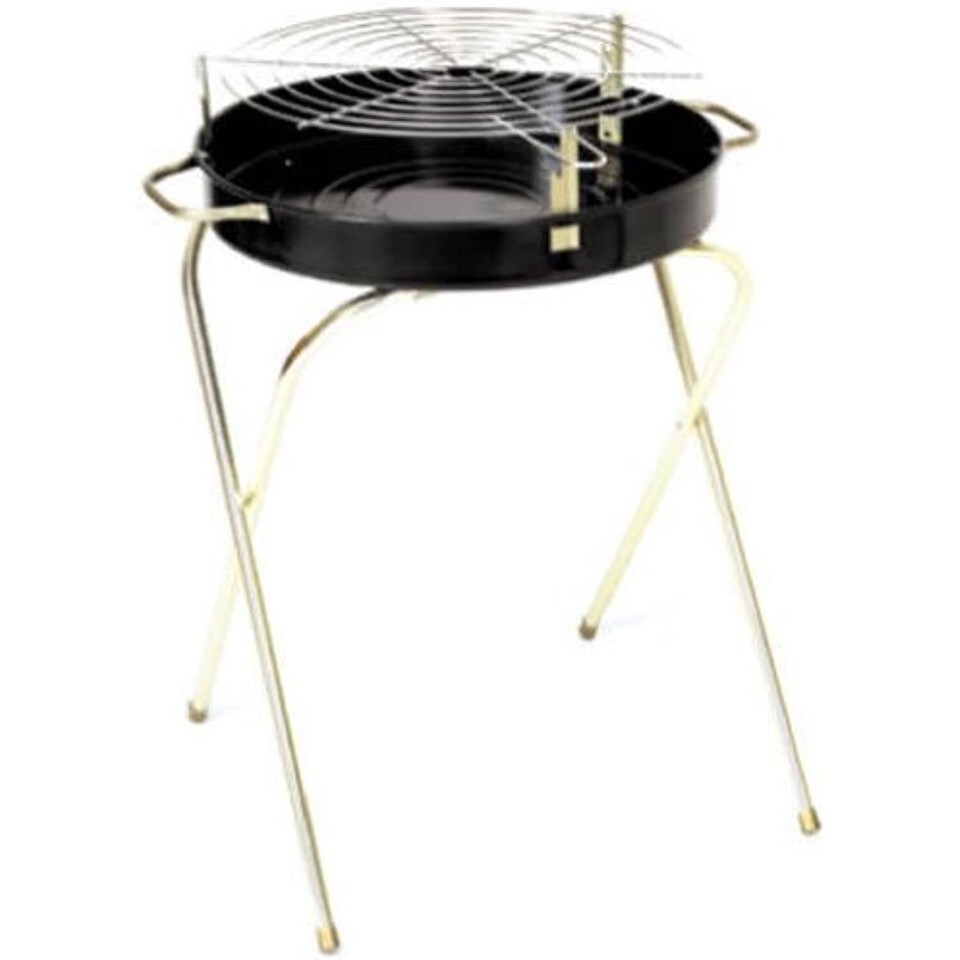 Portable, heavy-duty charcoal grill with stamped steel construction. Legs fold for easy storage and portability. Convenient handles for easy movement of grill.