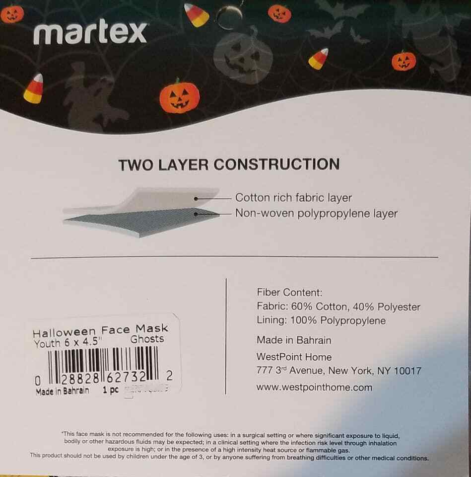 - Martex Dual Layer Halloween Face Mask Ghosts Youth Size (LOC TUB MASK-2)