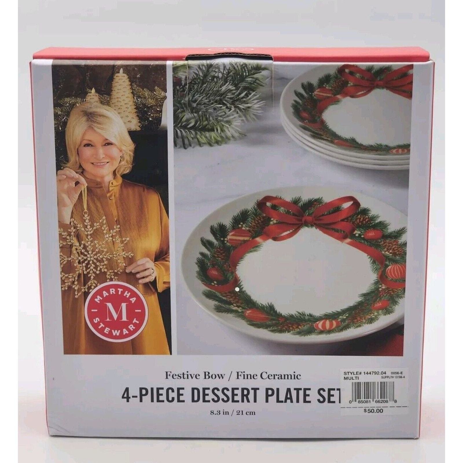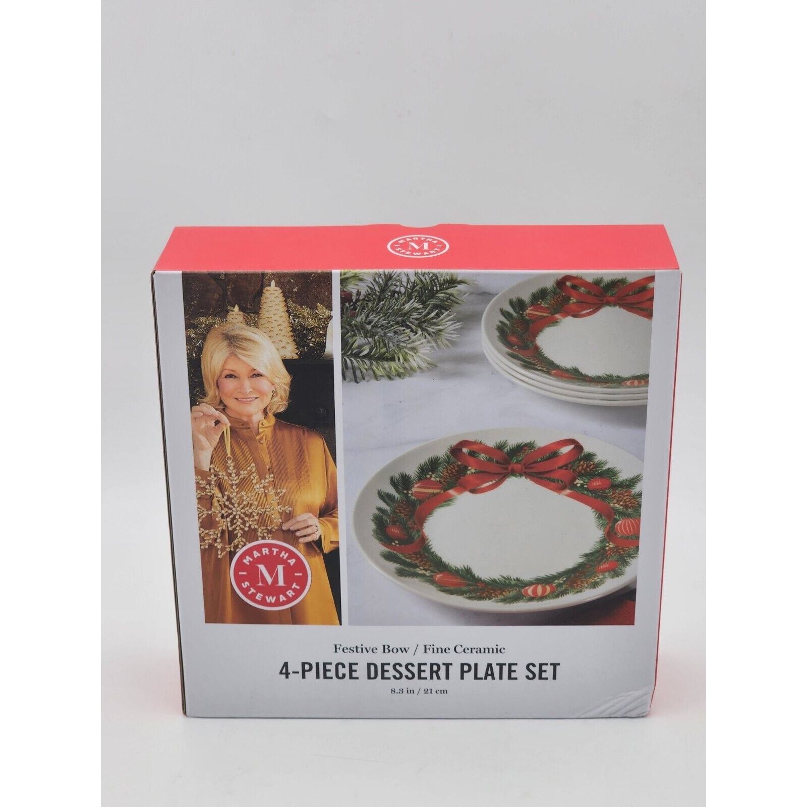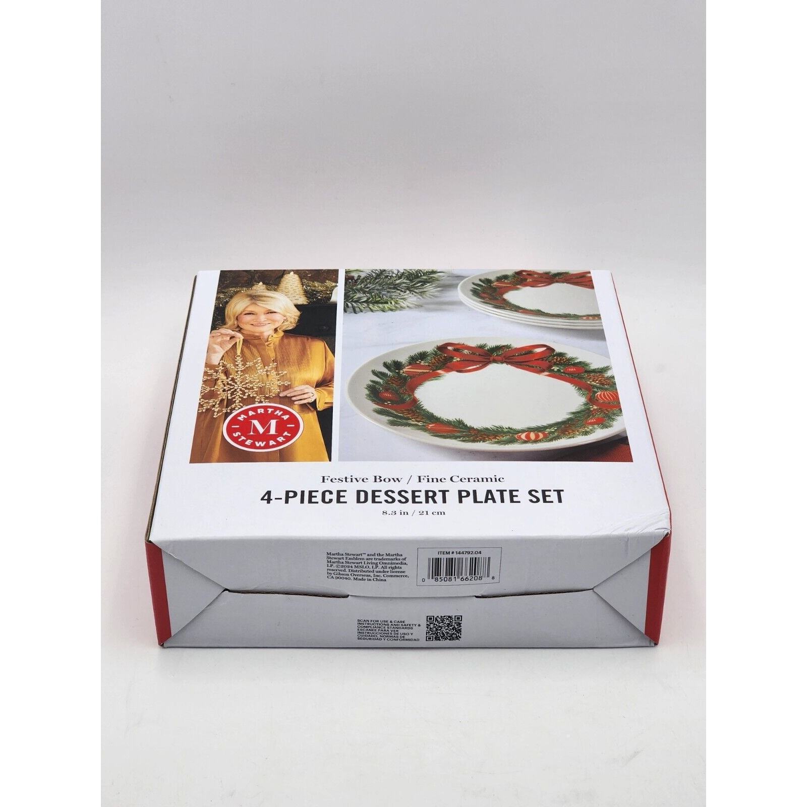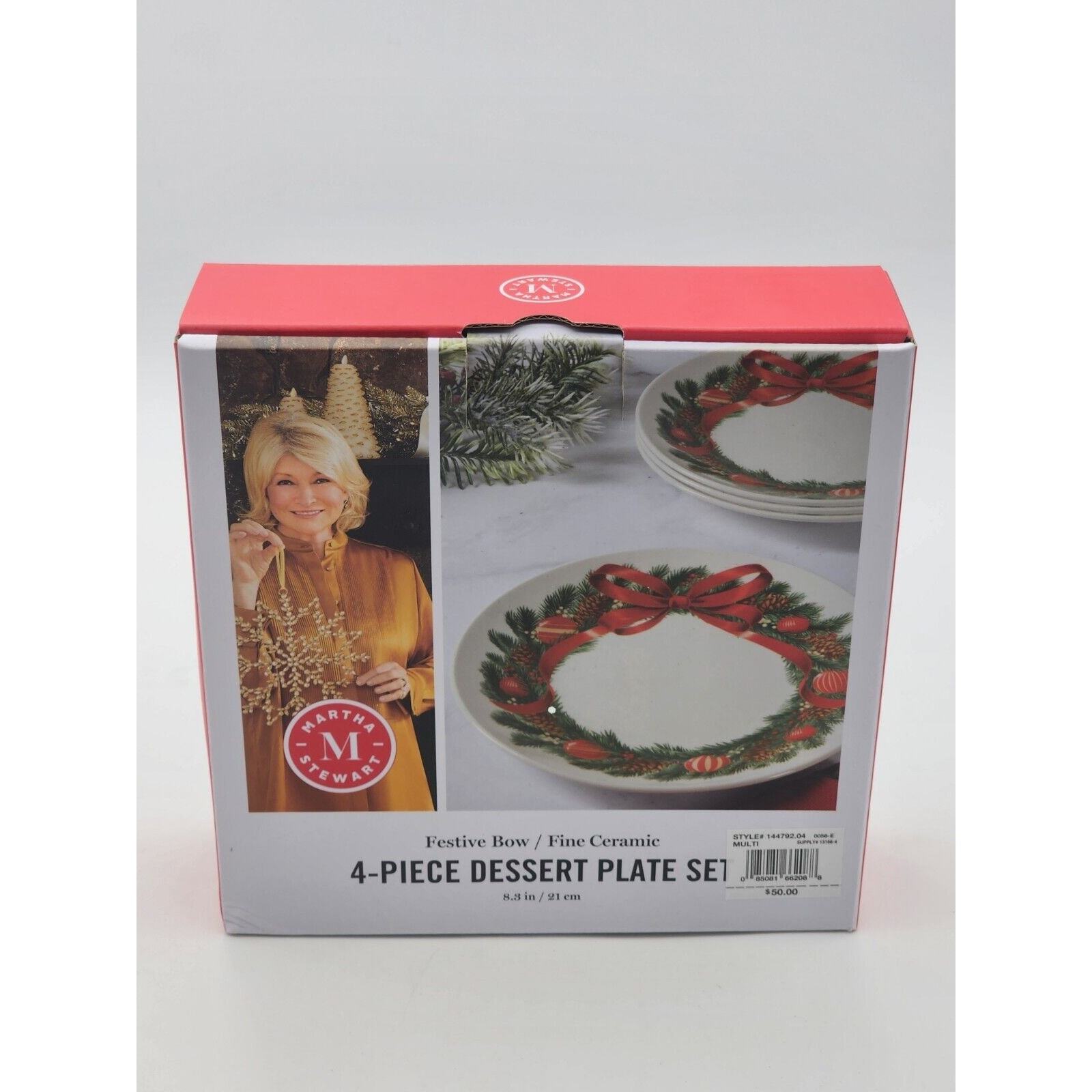 - Martha Stewart Festive Bow Dessert Plate 4 Piece Set 8.3" Fine Ceramic Brand New