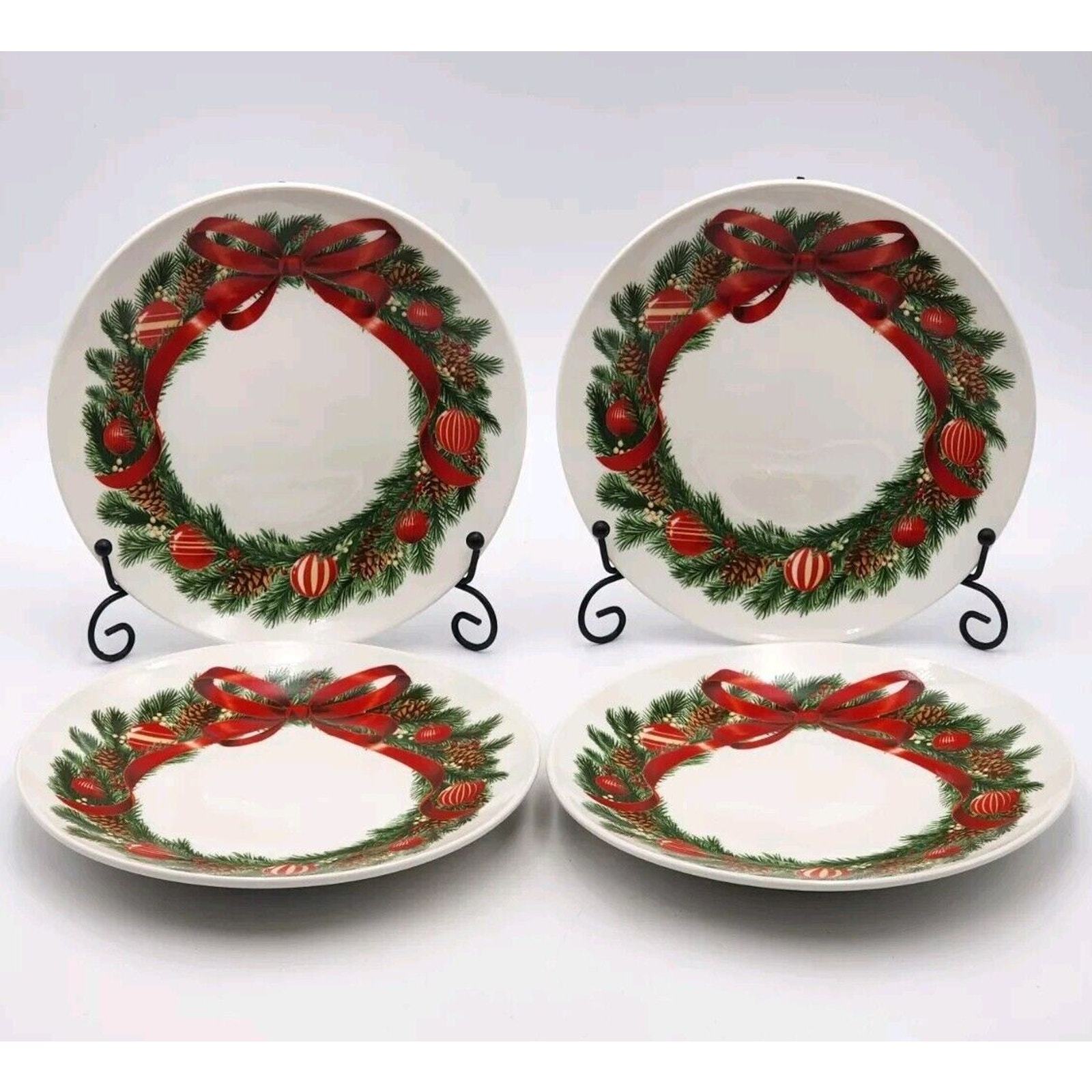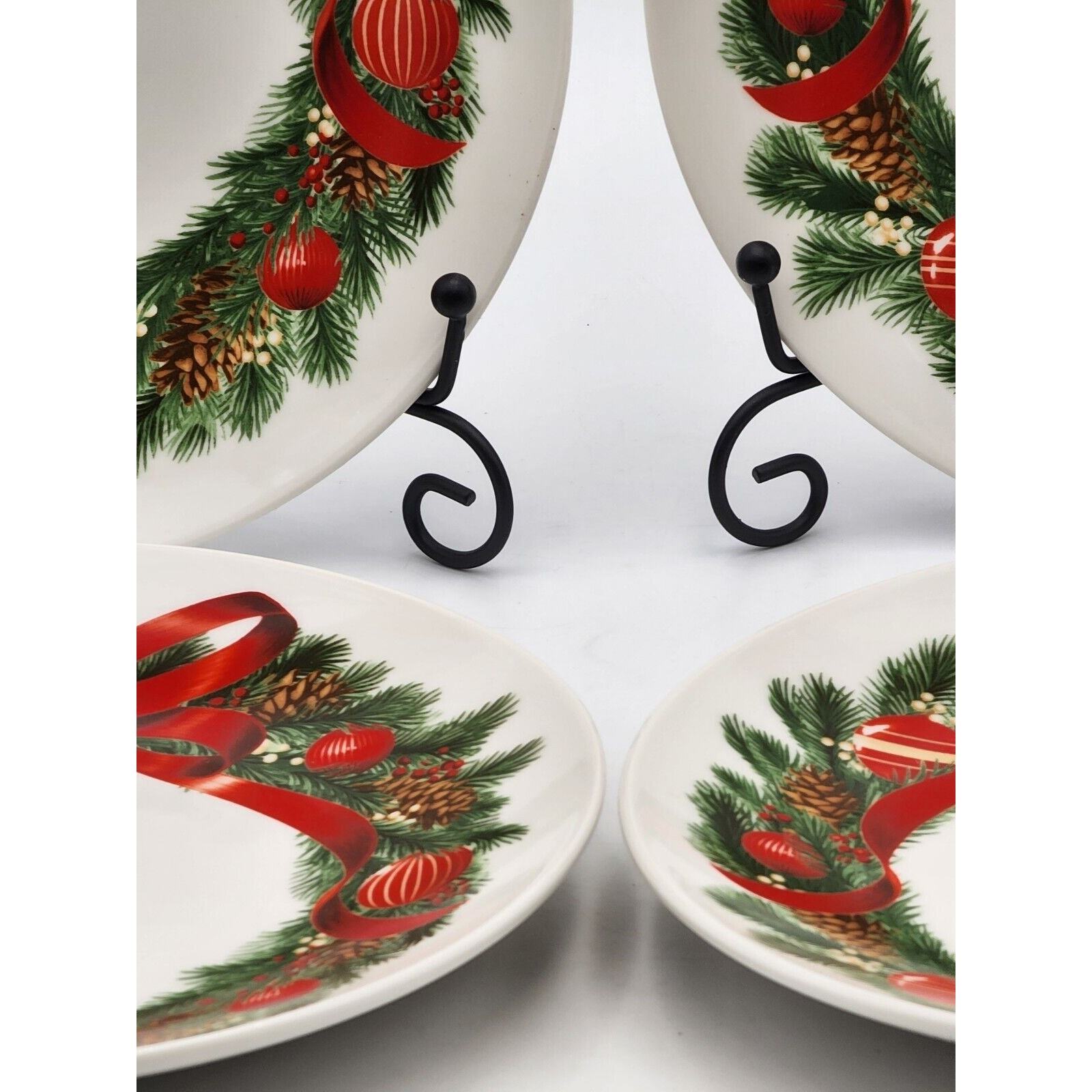 Martha Stewart Festive Bow Dessert Plate 4 Piece Set 8.3" Fine Ceramic Brand New