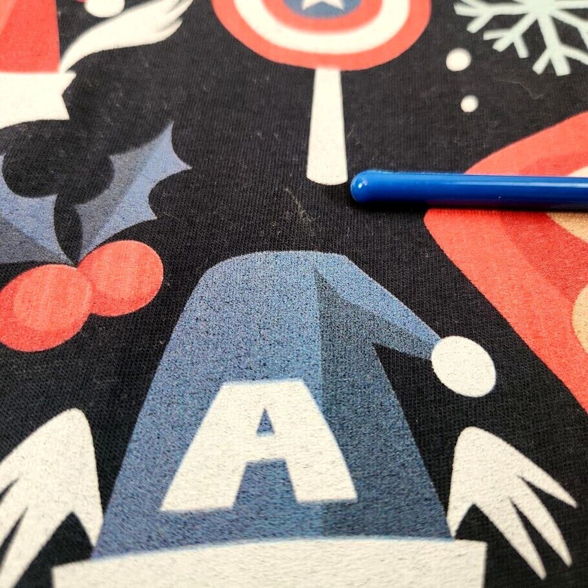 Celebrate the season superhero-style with this festive Avengers tee. Thor and Captain America strike heroic poses amid snowflakes, gift boxes, and candy-cane stripes, creating a colorful holiday collage that pops against the classic crew-neck silhouette. Soft jersey knit keeps you comfy whether you?re trimming the tree, swapping gifts, or binging MCU marathons by the fireplace.