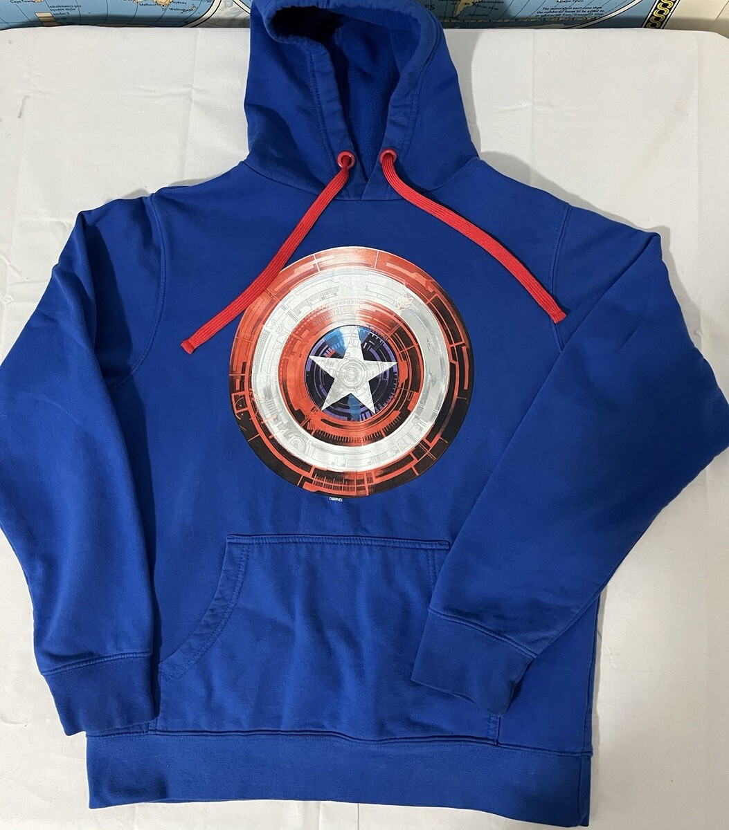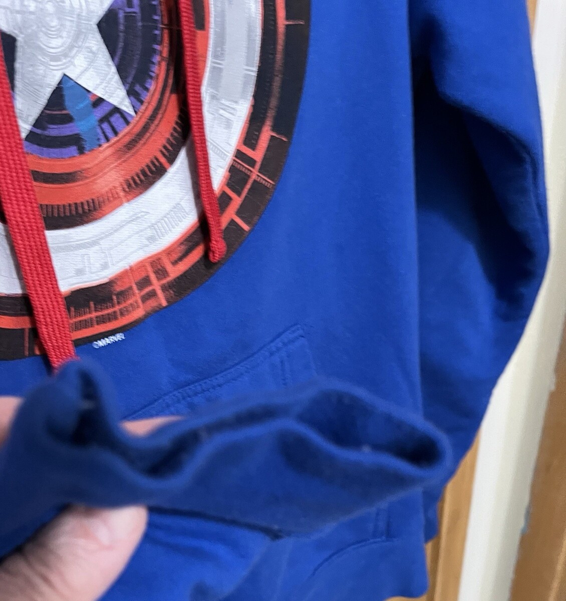 Marvel Captain America Hoodie Size Medium Color Navy Blue Comics Red Laces