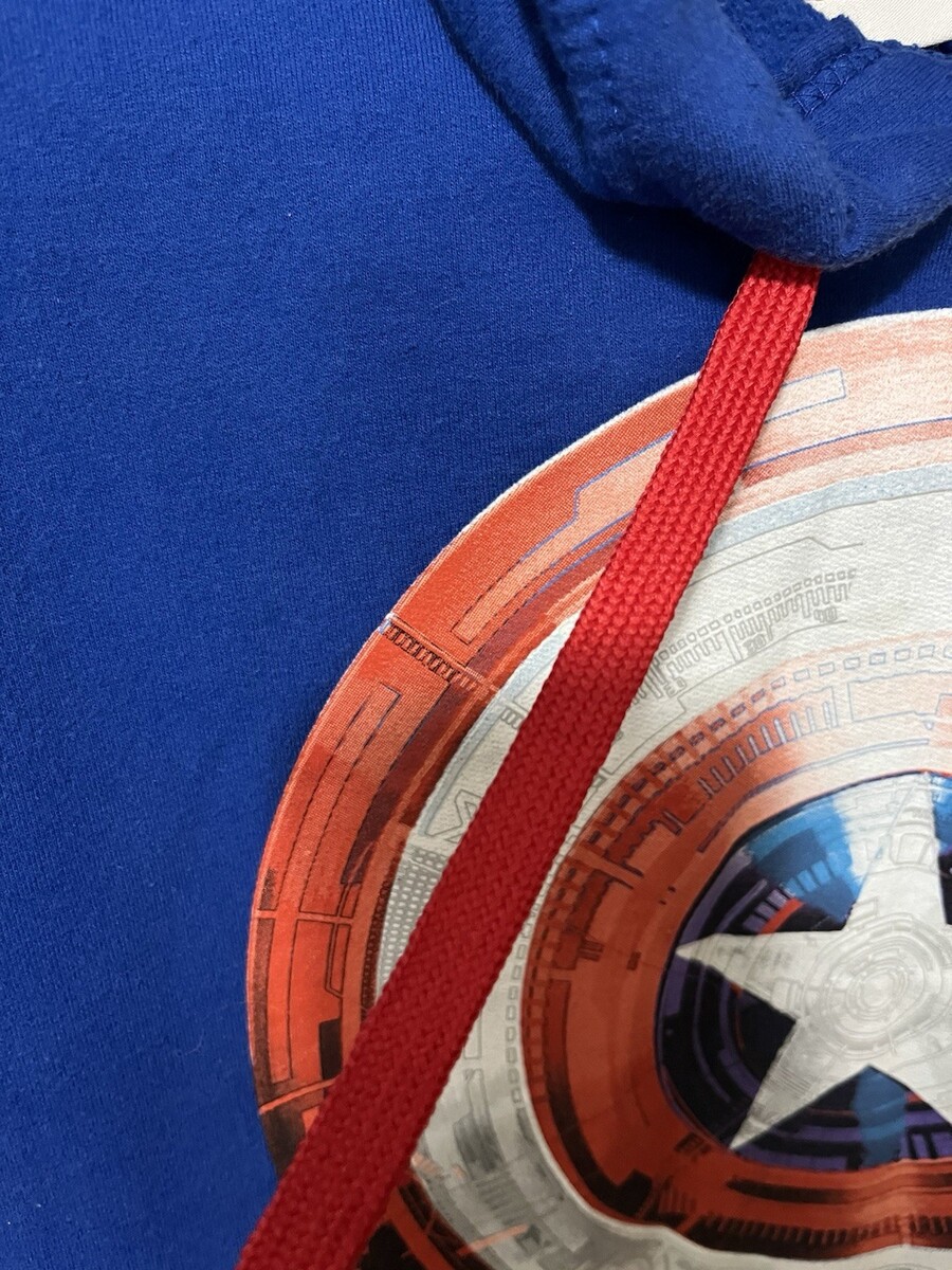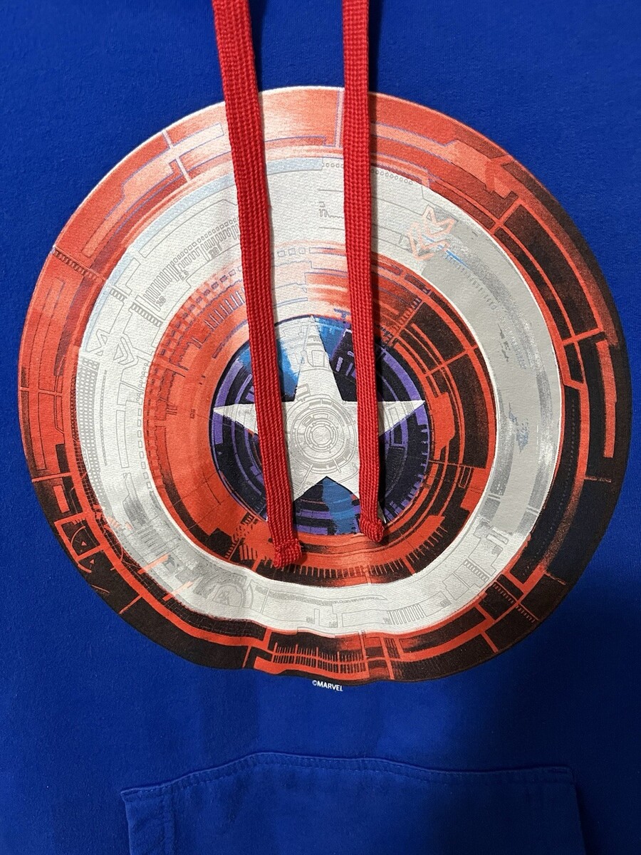 - Marvel Captain America Hoodie Size Medium Color Navy Blue Comics Red Laces
