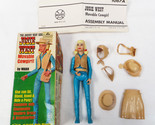 Vintage 9? Marx Josie West action figure doll from the Marx Johnny West line. She comes with her original box, her accessories, and her original instruction pamphlet or ?assembly manual? as it?s labeled. Based on the list of items the pamphlet says is included, the only accessory missing is her wrist watch. Her copyright markings on her back say 1967.