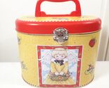 - Mary Engelbreit Sewing box tin metal Handle Latch Box Angel caddy crafts yellow