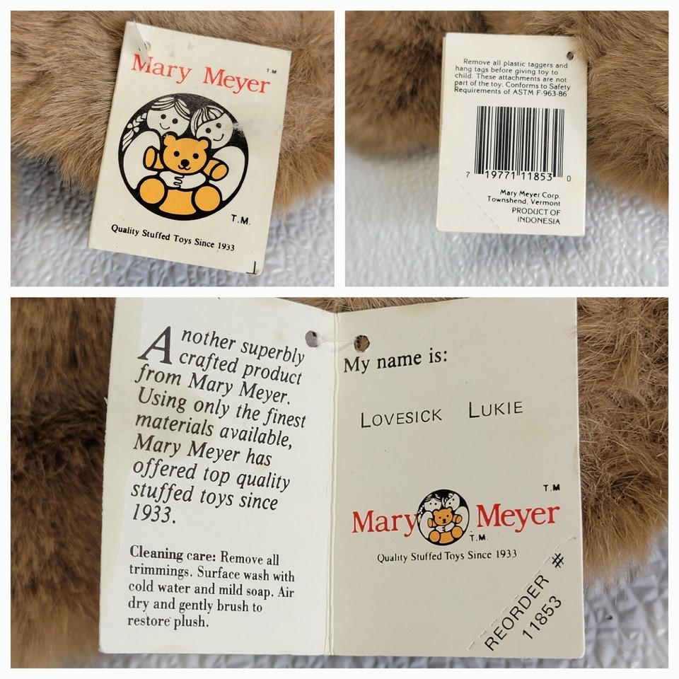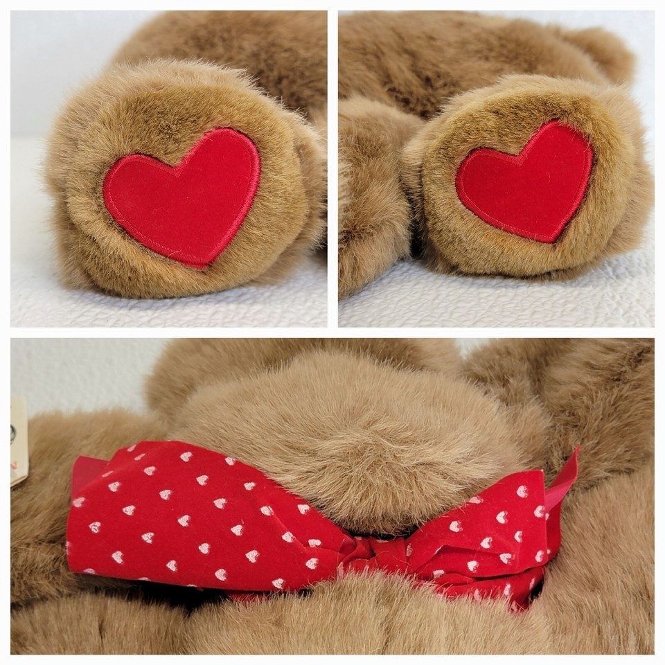 Mary Meyer Vintage Brown Puppy Dog Plush Red Valentine Hearts Bow Lovesick Lukie w/ Tag. Images show actual plush that will ship.