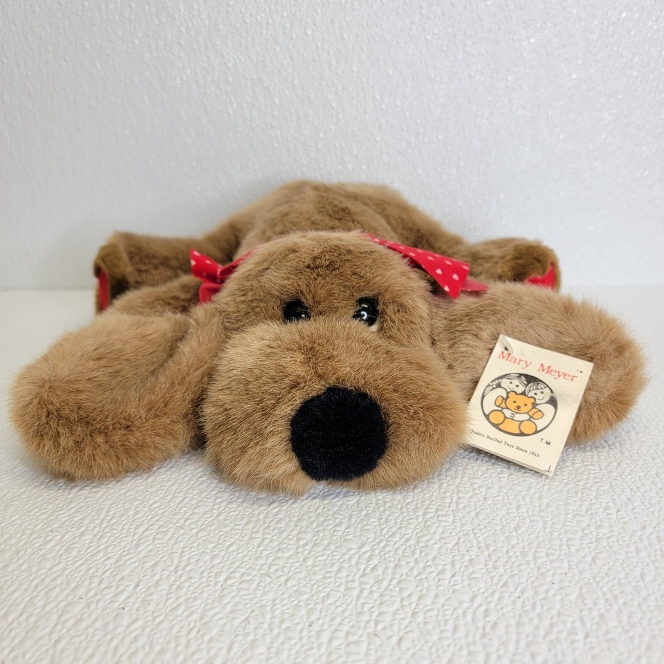 - Mary Meyer Vintage Brown Puppy Dog Plush Red Hearts Bow Lovesick Lukie