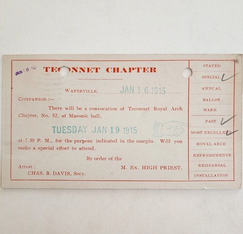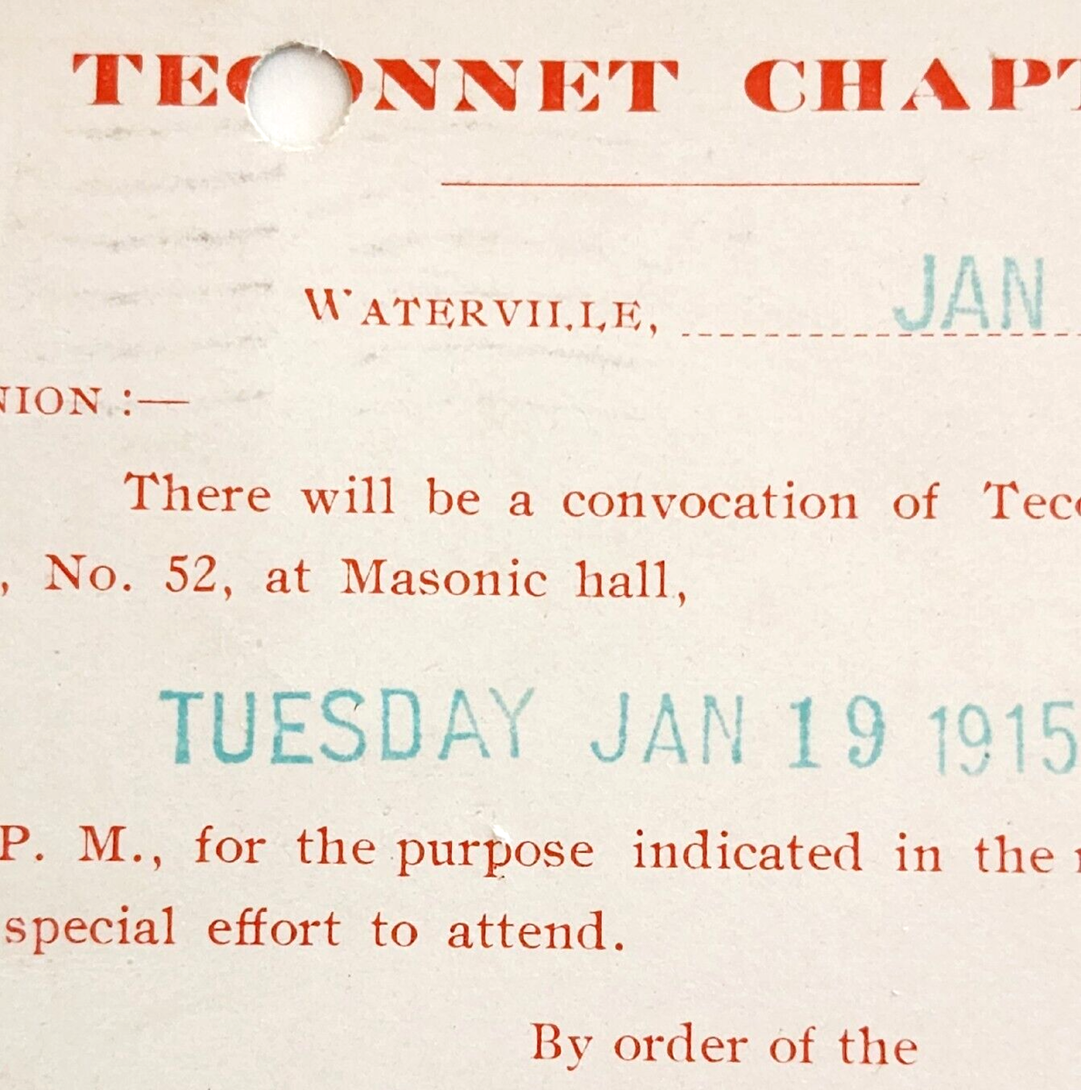 - Masonic Hall Meeting Invitation Teconnet Chapter Maine 1915 Postcard PCBG5E