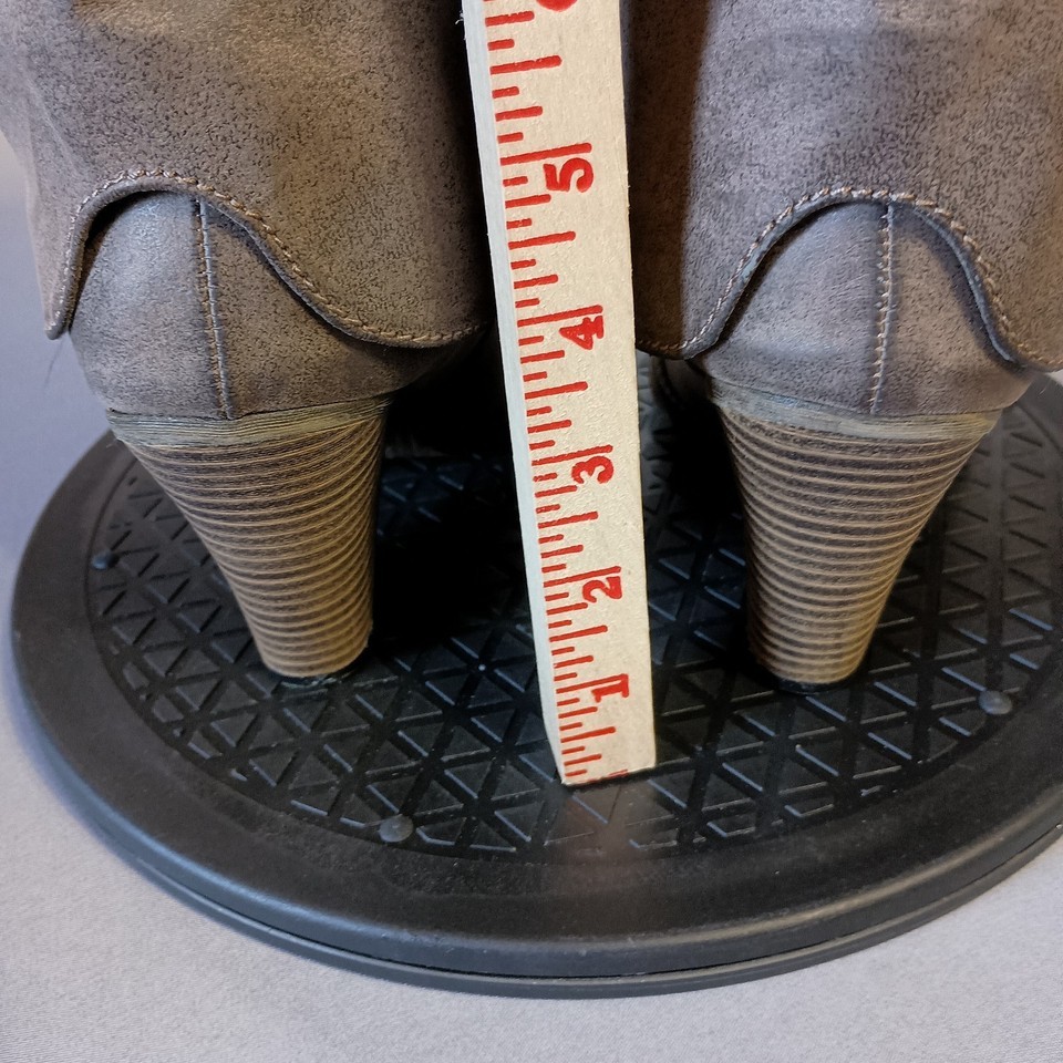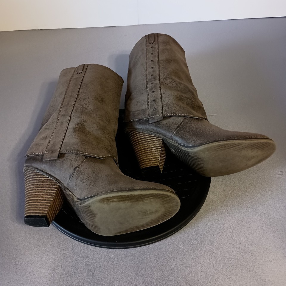 The Massini Tori Distressed Gray Speckled Mid-Calf Fashion Boot in size 8 is a stylish and versatile option for the modern woman. Featuring an almond toe shape and a high block heel, these boots are perfect for both casual and party occasions. Made with synthetic material and a pull-on closure, they are easy to wear and comfortable to walk in. Add a touch of Western flair to your outfit with these trendy boots from Massini, designed with a city-inspired theme in mind. Good condition normal wear.