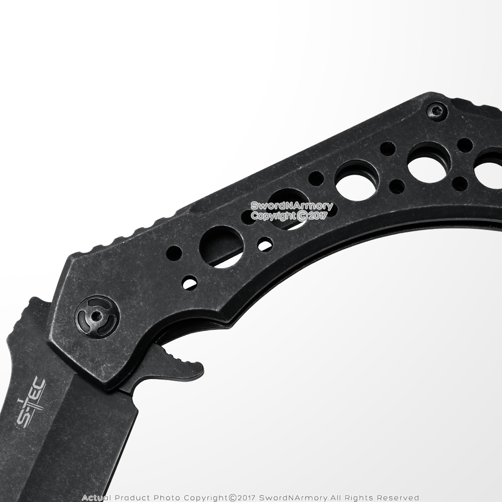 As the blade snaps open and the heavy feeling is balanced out by its large size you know you have a powerful piece of weaponry in your hand.