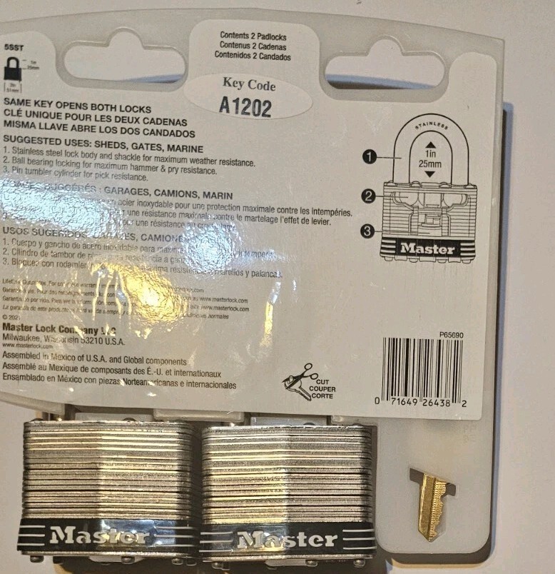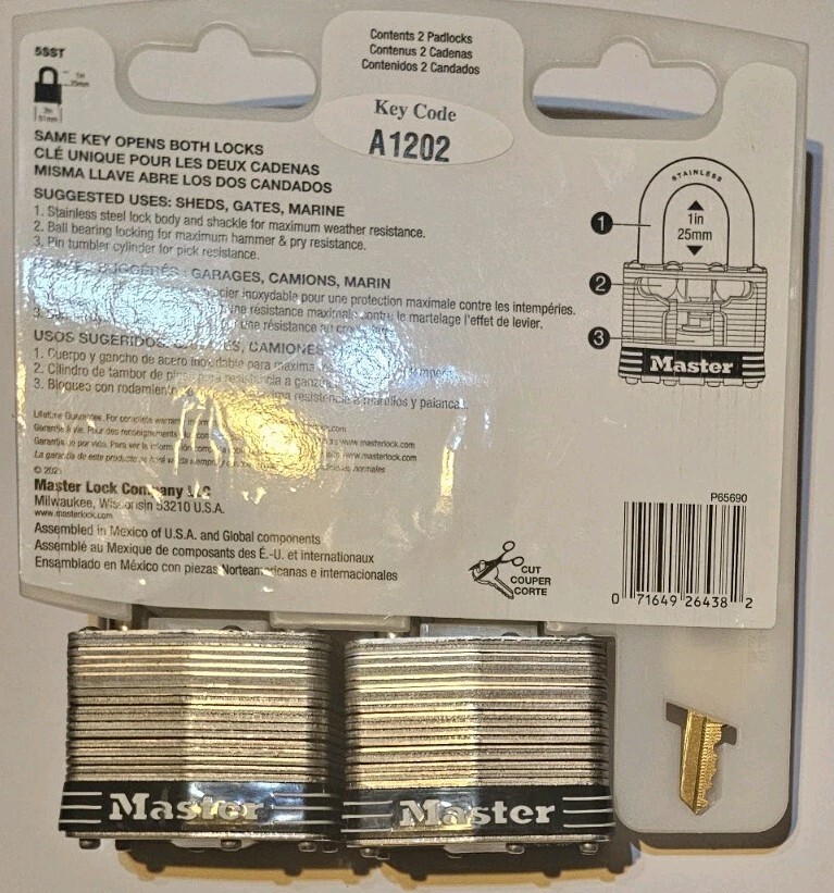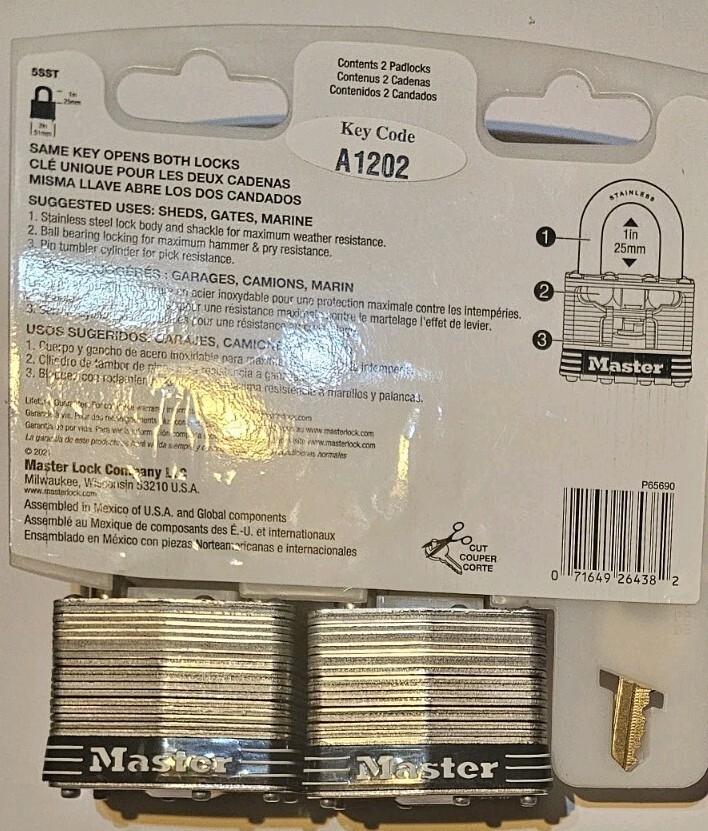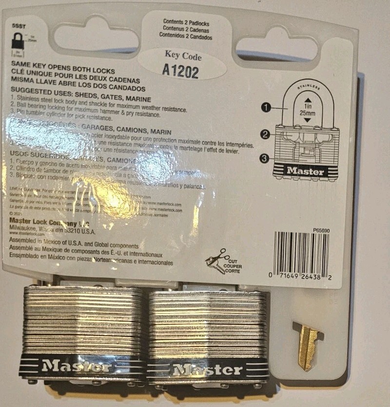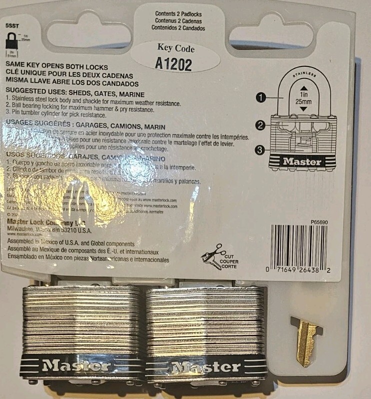 - Master Lock 5SSTHC Keyed Padlock Set, Keyed Alike Key, 3/8 in Dia Shackle, 1 in