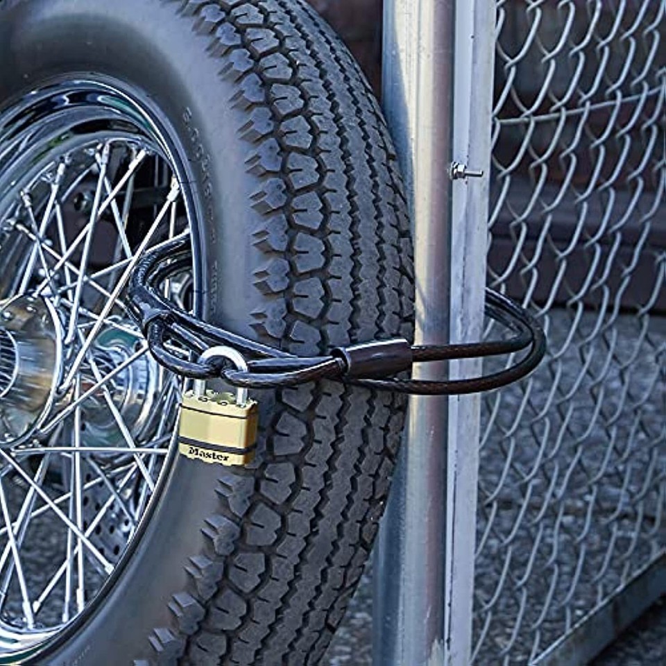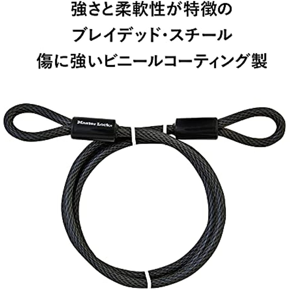 Product Description The Master Lock heavy duty cable is 6 feet, 3/8-inch diameter cable. Braided steel wire provides strength and flexibility. Convenient loops have rust-resistant sleeves and scratch guards. The galvanized steel cable resists rusting and the smoke vinyl coating helps prevent scratching. Use with laminated locks, solid steel locks, and mini u-locks is recommended. Master Lock offers a full line of padlocks, chains, cables, and specialty locks for all of your needs. From the Manufacturer The Master Lock Heavy Duty Cable is 6 feet, 3/8-inch diameter cable. Braided steel wire provides strength and flexibility. Convenient loops have rust-resistant sleeves and scratch guards. The galvanized steel cable resists rusting and the smoke vinyl coating helps prevent scratching. Use with laminated locks, solid steel locks, and mini u-locks is recommended. Master Lock offers a full line of padlocks, chains, cables, and specialty locks for all of your needs.