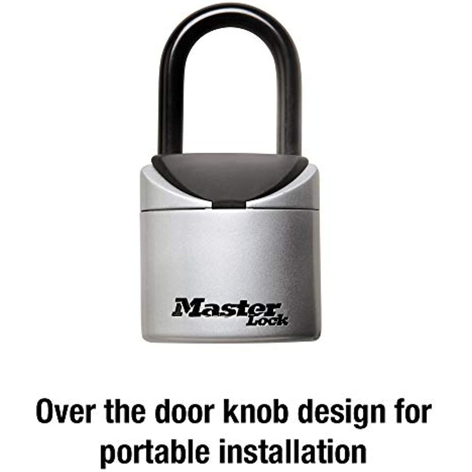 Product Description The Master Lock 5406D Portable Lock Box features a 2-3/4in (70mm) wide metal body for durability. The shackle design offers over the door mounting for convenience. Set your own 3-digit combination for keyless convenience and increased security. The flexible cover protects combination dials from weather, dirt and grime; and vinyl coated shackle prevents scratching.. From the Manufacturer Select who can access your property. Children after school, cleaning service, elder care, repair service or pet sitter. The Master Lock compact key safe holds 2-3 keys or card keys. It has a resettable combination lock so you can select an easy 3 digit number. This unit has a solid die cast body that is reinforced to withstand hammering and sawing. The molded cover protects the combination dials from weather, dirt and grime. The vinyl coated shackle and rubber pad protect property from scratches. 2-3/4" wide body.